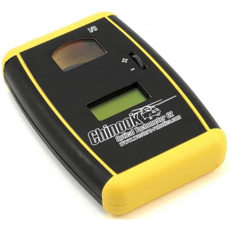 This is the Western Robotics Chinook G2 Elite Optical Tachometer. The G2 Elite Optical Tachometer is designed and manufactured in Canada with state of the art micro-controller technology. It's universal design enables it to determine the rotor blade speed of any R/C helicopter model in Revolutions Per Minute (RPM), with an aid of a large viewing window and LCD screen. It uses high quality..